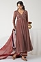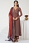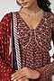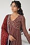Baise Gaba features a multi-colored anarkali in chiffon base with a fish-motif print and hand embroidery. It is paired with pants and a deep blue chiffon dupatta. Accentuate it with polki earrings and block heels for festive soirees or pooja ceremony.