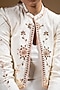 Featuring an off-white dress in dull satin base. It is paired with a muslin jacket gota detailing. Accentuate it with statement earrings and strappy heels for a chic look, perfect for cocktail parties or weekend getaways.