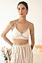Featuring an off-white kaftan top in rayon moss base with embroidery and fringe stitch detail. It is paired with flared trousers and a bralette having embroidery and braided straps. Accentuate it with statement earrings and heels for an evening look.