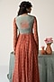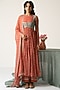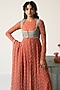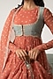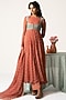 Baise Gaba features a pastel orange anarkali in chiffon base with bandhej motifs. It is paired with a pastel green muslin koti having mirror scalloped embroidery, including cotton modal straight pants and a chiffon dupatta. Accentuate it with polki earrings and block heels for festive soirees or pooja ceremony.