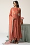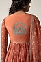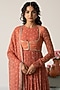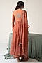 Baise Gaba features a pastel orange anarkali in chiffon base with bandhej motifs. It is paired with a pastel green muslin koti having mirror scalloped embroidery, including cotton modal straight pants and a chiffon dupatta. Accentuate it with polki earrings and block heels for festive soirees or pooja ceremony.