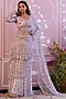Featuring a pink and white tiered pre-stitched saree in chiffon base with floral print. It is paired with a matching unstitched modal cotton blouse piece.