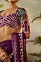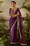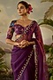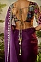 Baise Gaba features a mesmerizing Purple Sheer Saree Set that captivates with its delicate hand embroidery. The eye-catching saree is crafted in organza with cutwork zardosi detailing. It is paired with a lurex chiffon and georgette embroidered lightly padded blouse having lotus shaped bust, printed sleeves, back tie-ups and dangling latkans. Accentuate the designer saree set with statement jewellery and heels for a wedding or engagement ceremony.