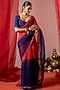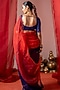 Featuring a red and blue saree in organza base with hand embroidery. It is paired with a muslin unstitched blouse. Accentuate it with polki jewellery and block heels for festive occasions or pooja ceremony.