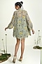 Featuring a sage green mini dress in chiffon base with floral print, puff sleeves, side pockets and a tie-up bow detail. It is paired with a cotton slip. Accentuate it with stud earrings and heels for an evening look.