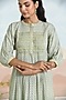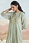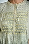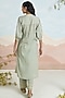 Featuring a sage green kurta in cotton dobby base with floral embroidery and hand-smocked detail. It is paired with straight-fit pants. Accentuate it with stud earrings and heels for a festive look.