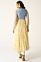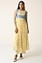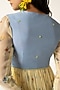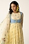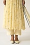 Baise Gaba features a yellow anarkali in chiffon base with a crew neckline and floral print. It is paired with a powder blue muslin koti, cotton modal straight pants and a chiffon dupatta. Accentuate it with polki earrings and block heels for festive soirees or pooja ceremony.