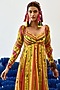 Featuring a yellow flared long dress in chiffon base with print, puffed raglan sleeves, cutwork and pleats.