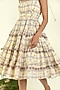 Featuring a yellow and lavender midi dress in soft cotton base with print, chiffon ruffles, embroidery and adjustable tie-up shoulder straps. Accentuate it with stud earrings and heels for an evening look.