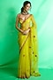 Featuring a yellow saree in satin organza base with cutwork, sequinned motifs and thread work. It is paired with a printed matching blouse piece in modal satin base.