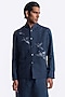 Featuring a blue bundi jacket in linen base with digital print and machine embroidery. Style it with a kurta set and mojaris for a festive occasion, cultural event, wedding or engagement ceremony.