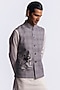 Featuring a grey bundi jacket in linen base with digital print and machine embroidery. Style it with a kurta set and mojaris for a festive occasion, cultural event, wedding or engagement ceremony.