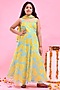 Blue & Yellow Chiffon Gota Lace Embellished Anarkali Set For Girls