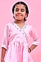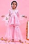 Featuring a pink kurta for girls in satin georgette base with gota embellishments. It is paired with sharara pants and a hand painted dupatta. Style it with sandals and hair accessories for festive occasions or sangeet ceremonies.
