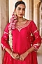 Featuring a magenta kurta in silk base with hand embroidery. It is paired with silk sharara pants and a georgette mirror work dupatta. Accentuate it with kundan polki earrings and heels for festive occasions or sangeet ceremony.