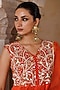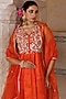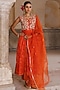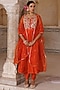 Featuring an orange anarkali in silk base with hand embroidery. It is paired with silk pants and an organza aari embroidered dupatta. Accentuate it with dangler earrings and heels for festive occasions or sangeet ceremony.