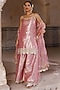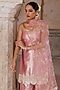 Featuring a pastel pink kurta in tissue base with embellishments. It is paired with silk sharara pants and a silk organza embroidered dupatta. Accentuate it with dangler earrings and heels for festive occasions or sangeet ceremony.