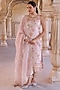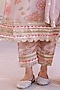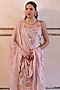 Featuring a pastel pink kurta in tissue base with floral print and lace embellishments. It is paired with pants and a georgette embroidered dupatta. Accentuate it with dangler earrings and juttis for festive occasions or pooja ceremony.