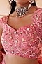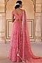 Featuring a pink layered lehenga in chiffon base with floral print. It is paired with a hand embroidered blouse and a lace embellished dupatta. Accentuate it with dangler earrings and heels for festive occasions or daytime weddings.