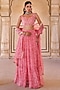Pink Chiffon Floral Printed Layered Lehenga Set
