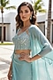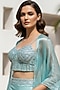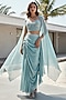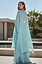 Featuring an aqua blue cape in crushed tissue base. It is paired with a blouse having sequins and cutdana embroidery, including a skirt. Accentuate it with zircon dangler earrings, a clutch and block heels for festive occasion, sangeet, mehendi or cocktail ceremony.