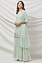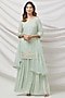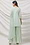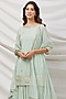 Featuring an aqua blue kurta in georgette base with mirror, gota, and sequins embroidery. It is paired with matching sharara pants and a net dupatta.