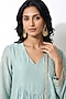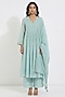 Featuring an aqua anarkali kurta in cotton base with zari booti and thread work. It is paired with a palazzo and a dupatta. Style it with antique gold or kundan jewellery, soft waves, and nude heels for an earthy vibe. Perfect for daytime weddings, festive brunches, and intimate celebrations.