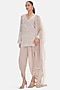 Featuring a beige kurta in georgette base with sequins, cutdana and beads work. It is paired with dhoti pants and a dupatta. Style it with silver or swarovski jewellery and metallic heels for festive occasion, cocktail party, sangeet or engagement ceremony.
