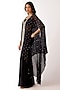 Featuring a black kurta in mukaish georgette base with mirror, zari and dabka embroidery. It is paired with a bustier and sharara pants. Accentuate it with zircon jewellery and heels for a festive occason or sangeet ceremony.