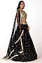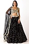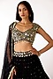 Featuring a black lehenga in mukaish georgette base with mirror, zari and dabka embroidery. It is paired with an embroidered blouse and a dupatta. Accentuate it with zircon jewellery and heels for a sangeet or cocktail ceremony.