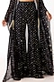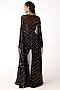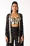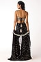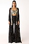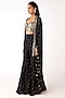 Featuring a black cape in mukaish georgette and butterfly net base with mirror, zari and dabka embroidery. It is paired with a blouse and sharara pants. Accentuate it with zircon jewellery and heels for a sangeet or cocktail ceremony.