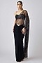 Featuring a black pre-draped saree in sequins net and lycra base with bead and cutdana embroidery. It is paired with an embroidered blouse. Accentuate this statement lehenga with heels and statement jewellery for your wedding, sangeet or engagement look.