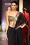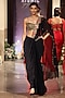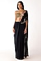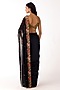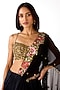 Featuring a black draped saree in viscose lycra and viscose georgette base. It is paired with a blouse having mirror, shell and brass embroidery. Accentuate it with meenakari or kundan jewellery, block heels and a potli bag, perfect for festive occasion, sangeet or cocktail ceremony.