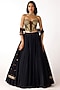 Featuring a black lehenga in viscose lycra base. It is paired with a sequins embroidered corset blouse and a dupatta. Accentuate it with zircon jewellery and heels for a sangeet or cocktail ceremony.