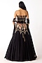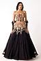 Featuring a black mermaid lehenga in viscose organza base with sequins, beads, brass and kundan embroidery. It is paired with an embroidered corset and a dupatta. Accentuate it with zircon or diamond jewellery, metallic heels and a clutch bag, perfect for wedding, cocktail or engagement ceremony.