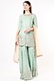 Featuring a blue short kurta in georgette base with sequins embroidery. It is paired with matching sharara pants and a contrasting dupatta.