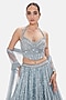 Featuring a blue lehenga in georgette base with sequins, coin and beads work. It is paired with a corset blouse and a dupatta. Style it with zircon jewellery, metallic heels, and a sleek clutch for a refined look. Perfect for wedding functions or engagement ceremony.