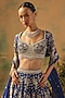 Featuring a blue lehenga in viscose organza base with sequins, crystal and pearl embroidery. It is paired with an embroidered blouse and an embroidered dupatta. Accentuate it with zircon or swarovski jewellery, embellished heels and a potli bag for a wedding or engagement ceremony.
