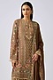 Featuring a brown kurta in chinon base with mirror work and sequins embroidery. It is paired with embroidered sharara pants and a dupatta. Accentuate with statement jewellery and heels for festive occasions or wedding ceremonies.
