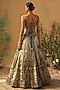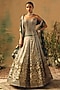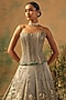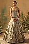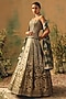 Featuring a green lehenga in banarasi base with sequins, stones and beads embroidery. It is paired with an embroidered corset and an embroidered dupatta. Accentuate it with kundan polki or meenakari jewellery, embellished heels and a clutch for a wedding or mehendi ceremony.
