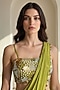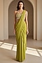 Featuring a green draped saree in chinon base with embroidery. It is paired with a blouse. Accentuate it with statement earrings and stiletto heels for an elegance, perfect for cocktail nights, receptions and glamorous evening events.