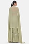 Featuring a green draped saree in georgette base. It is paired with a cape and a blouse having sequins, coin, mirror, pearl and beads work. Accentuate it with dangler earrings and heels for a festive occasion or sangeet ceremony.