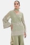 Featuring a green kurta in georgette base with sequins, cutdana and beads work. It is paired with sharara pants and a dupatta. Style it with silver or swarovski jewellery and metallic heels for festive occasion, cocktail party, sangeet or engagement ceremony.