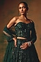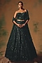 Featuring a green lehenga in net base with sequins, cutdana and beads embroidery. It is paired with an embroidered blouse and an embroidered dupatta. Accentuate it with swarovski or zircon jewellery, embellished heels and a clutch for a sangeet or cocktail ceremony.