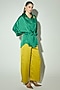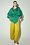 Featuring a green tunic in satin base with drawstring detail. It is paired with wide palazzo pants. Accentuate it with gold jewellery and block heels for an evening look.
