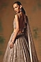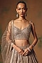 Featuring a grey lehenga in georgette base with sequins, cutdana and beads embroidery. It is paired with an embroidered blouse and an embroidered dupatta. Accentuate it with swarovski or zircon jewellery, embellished heels and a clutch for a sangeet or cocktail ceremony.