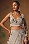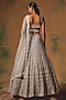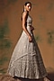 Featuring a grey lehenga in net base with sequins and pearl embroidery. It is paired with an embroidered blouse and an embroidered dupatta. Accentuate it with pearl or zircon jewellery, embellished heels and a clutch for a bridesmaid look, Perfect wear for your wedding, sangeet or reception ceremony.