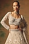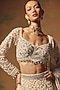 Featuring an ivory lehenga in butterfly net base with sequins, cutdana, stones and beads embroidery. It is paired with an embroidered blouse and an embroidered dupatta. Accentuate it with emerald or zircon jewellery, embellished heels and a clutch for a bridesmaid look, Perfect wear for your wedding, sangeet or reception ceremony.