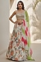 Featuring an ivory lehenga in georgette base with print and embroidery. It is paired with an embroidered blouse and a dupatta. Accentuate it with gold jewellery and a sleek low bun or gajra for a regal look, ideal for weddings or receptions.