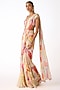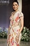 Featuring an ivory draped saree in georgette base with sequins, mirror, beads and crystal embroidery. It is paired with a blouse. Accentuate it with meenakari jewellery and heels for festive occasions, daytime function or destination weddings.